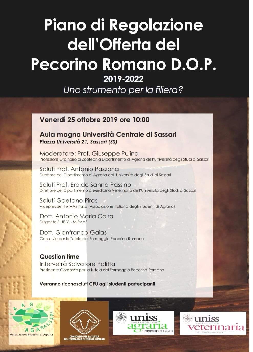 Macomer, 21 ottobre 2019 - Venerdì 25 ottobre, alle 10 nell'Aula Magna dell'Università di Sassari, si parlerà di "Piano di Regolazione dell’Offerta del Pecorino Romano D.O.P. 2019-2022 - Uno strumento per la filiera?". Il dibattito sarà moderato dal professor Giuseppe Pulina, ordinario di Zootecnia del Dipartimento di Agraria. Seguirà un Question Time con il presidente del Consorzio di tutela del pecorino romano, Salvatore Palitta. Sono previsti crediti formativi per gli studenti. In allegato la locandina con gli interventi in dettaglio.